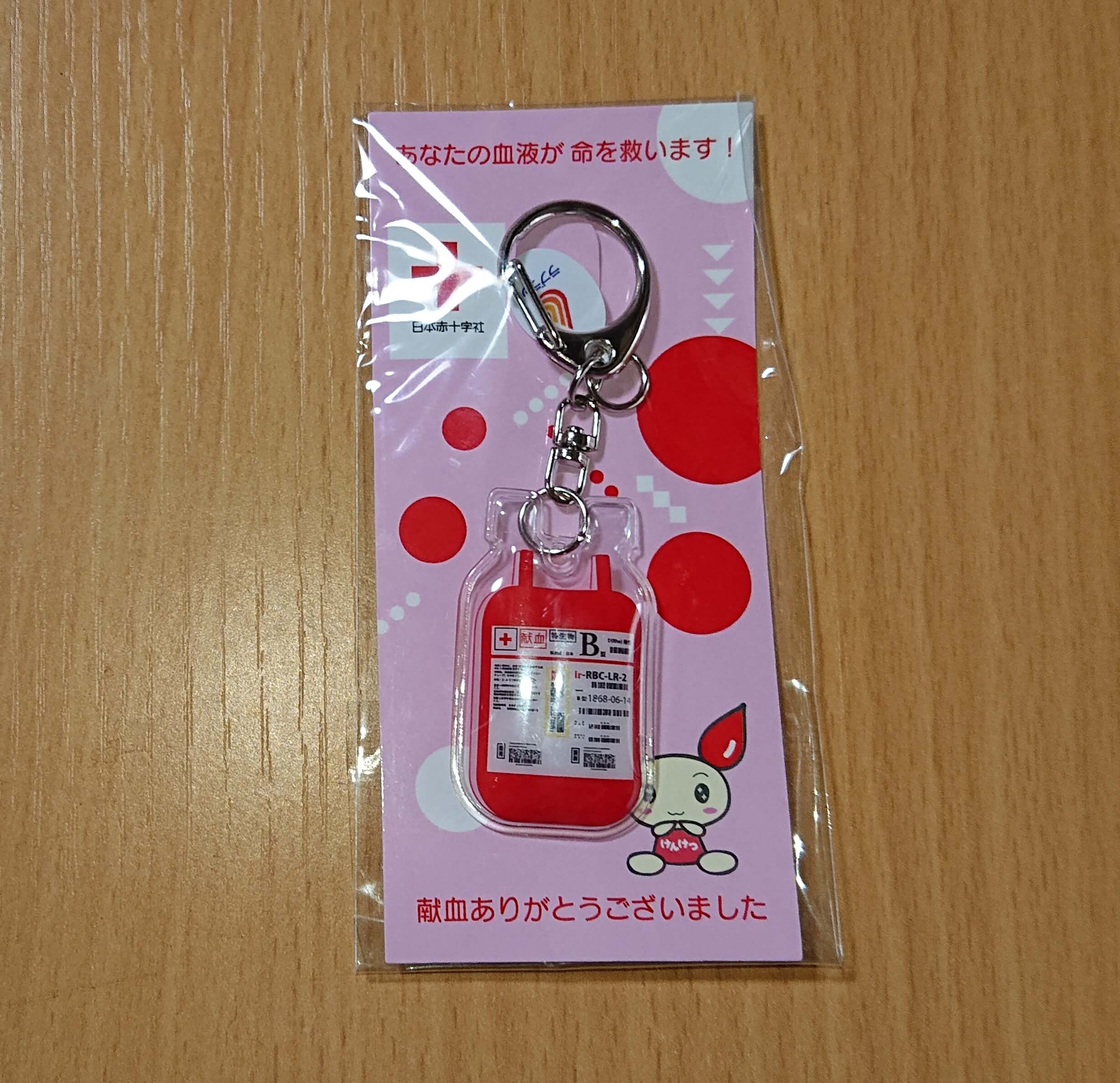 ところで献血できなくてもスポーツドリンクと輸血パックのキーホルダーが貰えたとのこと。夫は「なんか悪い気がするな・・」と言っていました。